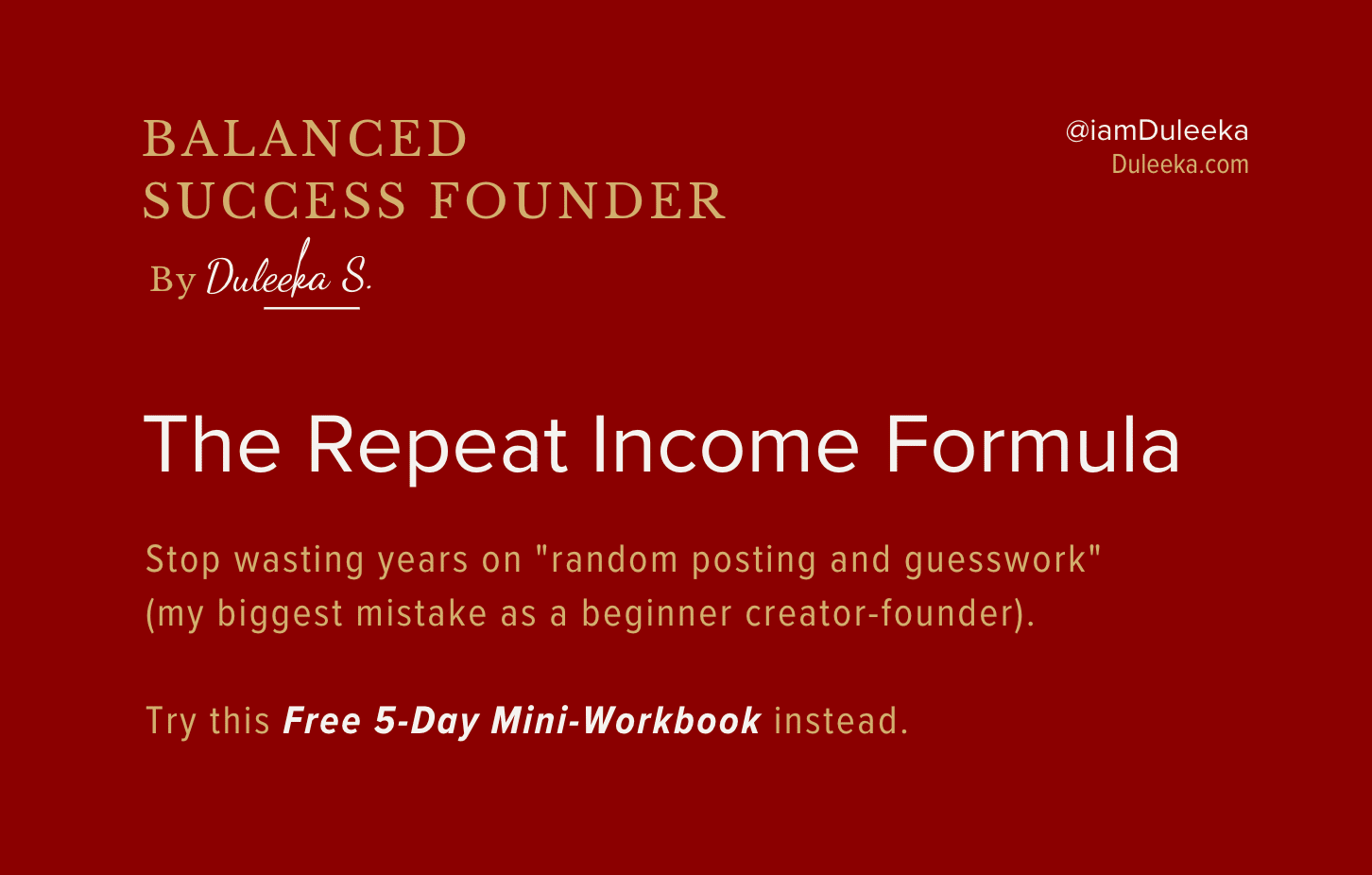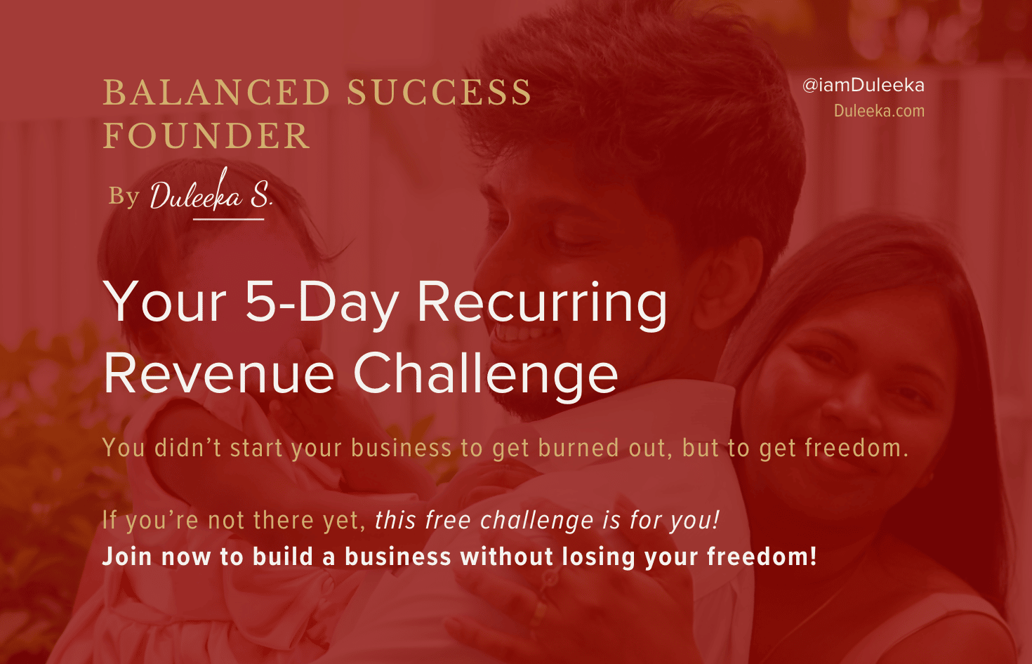 Balanced Success Founder by Duleeka S. Your 5 Day Advanced Recurring Revenue Challenge! Hello founder! Welcome to "Your 5 Day Advanced Recurring Revenue Challenge"! If you are new to my newsletter, "Balanced Success Founder", you should have already received a confirmation email to your inbox now. (Please check your "spams" also. Sometimes, it can happen). Once you confirm your subscription (it's free!), you will receive the email for the "Day 1 of your Challenge". Make sure not to skip a...